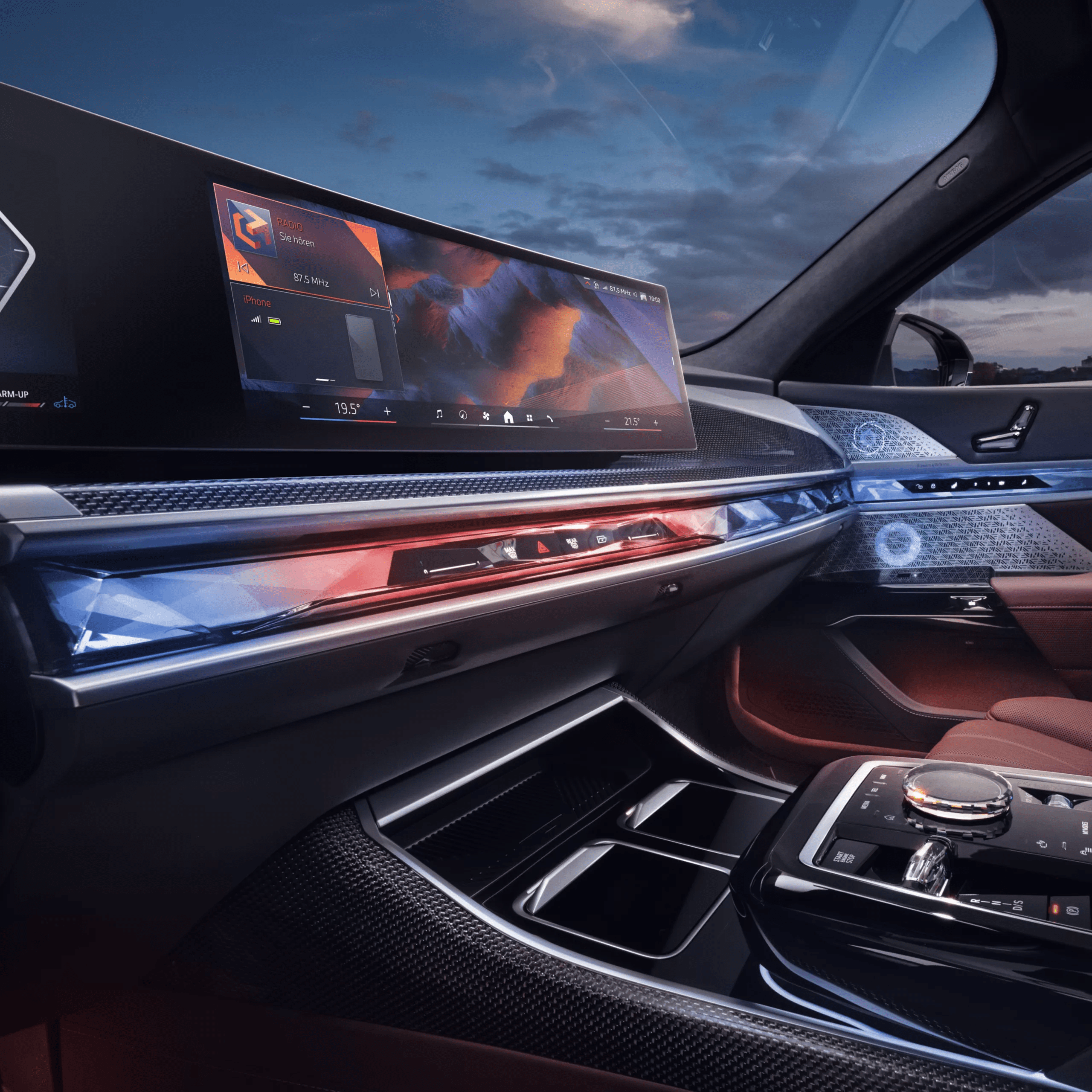 7시리즈 실내의 대형 커브드 디스플레이와 크리스탈 소재의 버튼이 주는 화려한 하이테크 무드는 G90이 주는 포근하고 안락한 느낌과는 결이 다릅니다. 또한 시어터 스크린과 같은 첨단 기술도 눈길을 사로잡습니다.